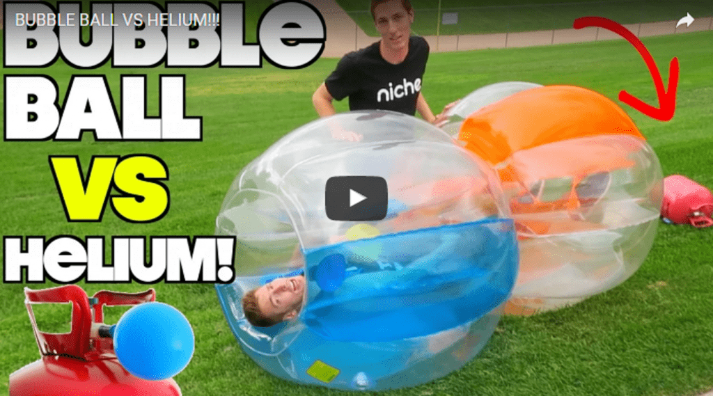 Their idea was to fill up the bubbles with helium. They supposed that it would make bubbles much lighter and let them fall to the ground in slow motion mode after crashing each other wearing helium filled bubble balls.