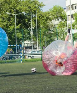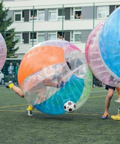 Players wear the bubbles. Regular football match in teams of 4, 5 or 6 players. No fouls, no outs nor corners!