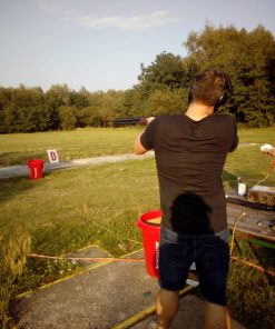 Clay Pigeon Shooting is another firing activity. The flying target, shot by an automaticย launcher, is moving fast. You have to think, aim and fire really quick. Those who have experience in bird hunting with a shotgun will probably have 40-60% of success. Those who try it for the first time will probably have 0-10% of success. Luckily the shotgun bullet is loaded with multiple metalic shot which disperses when leaving the barrel helping to hit the target.